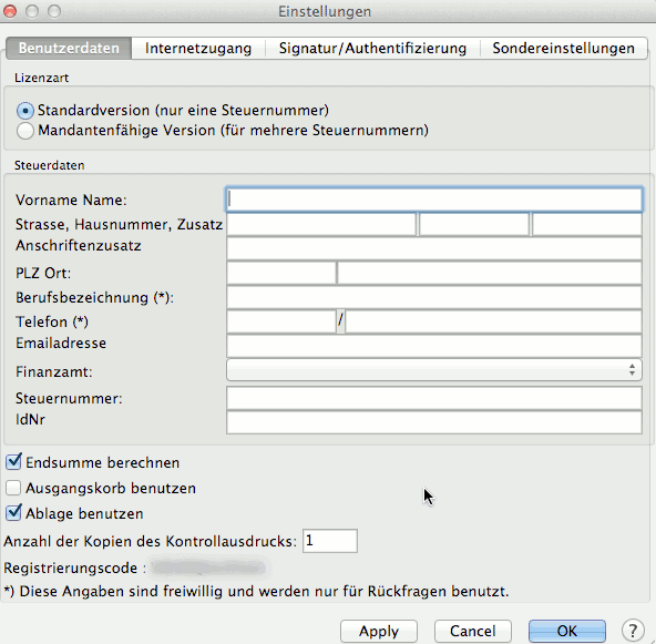 Winston Mandanten Einrichtung und Authentifizierung beim Finanzamt