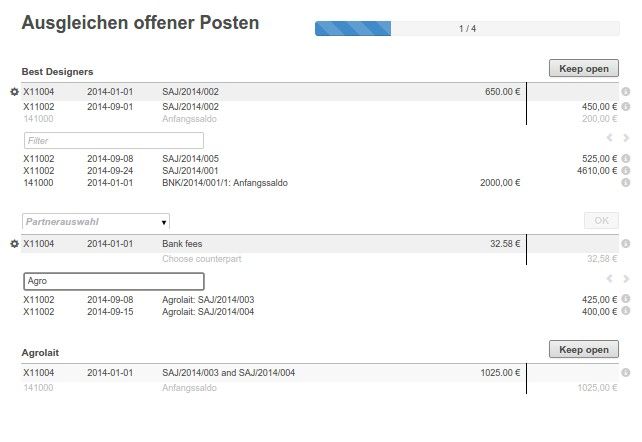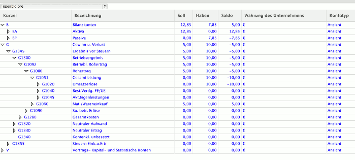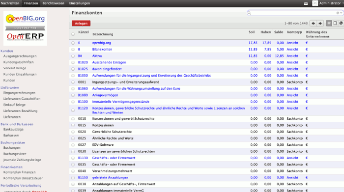 Der Kontenplan für die Deutsche Buchführung bildet die Grundlage für die Fibu. Das Modul beinhaltet sämtliche Konten aus dem SKR03 und SKR04 Kontenrahmen der Datev mitsamt seiner hierachischen Struktur. Ausserdem wurden die Steuern so definiert, dass korrekte Buchungen für In- und Ausländische Geschäftsvorfälle gebucht werden.