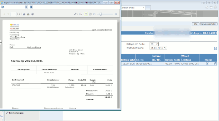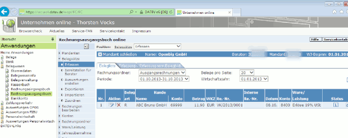 Rechnungsausgangsbuch in Datev Unternehmen Online