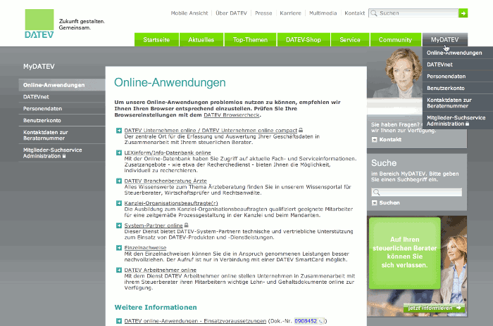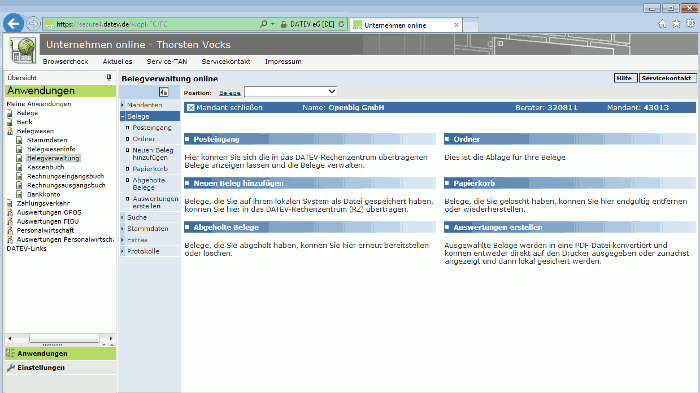 Startseite von Datev Unternehmen Online