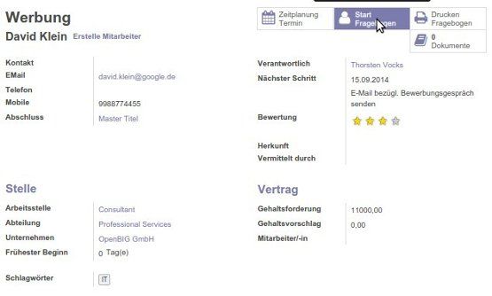 Konfigurieren Sie flexibel Ihren eigenen Einstellungsprozess, Odoo kann sowohl die Prozesse von kleinen als auch von großen Unternehmen abbilden.