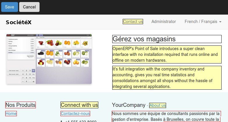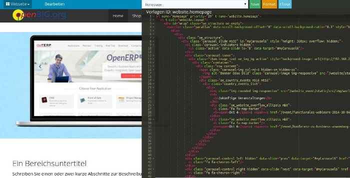 Passen Sie jede Seite einfach mit dem integrierten Template-Editor an. Veröffentlichen Sie Ihre Arbeit schnell als Odoo-Modul.