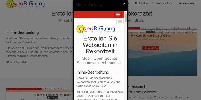 Dank dem responsive Design von Odoo ist ihre Webseite auch auf mobilen Geräten ein tolles Erlebnis. Alle Seiten passen sich der aktuellen Bildschirmgröße an (Smartphones, Tablets, Desktops).